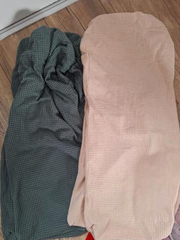 4 stoelhoezen (2×groen en 2x wit/lichtroze). Ze zij elastisch dus kunnen over verschillende maten stoelen.