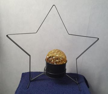 Bloempotje in de vorm van een ster (leuk voor kerst). Met een glazen glitterbal met led-snoertje. 39Cm hoog. Verzendkosten zijn voor u.