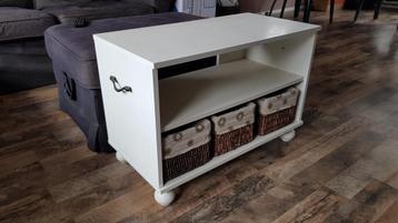 Een wit tv meubel / kastje aangeboden met 3 gevoerde opbergmandjes breed 72,5 diep 37 hoog 49,5 ophalen tot zaterdag