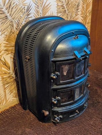Frisia den haag gietijzeren art deco kachel rond 1920. Heel bijzonder exemplaar! Van origine om kolen in te branden, maar ook geschikt voor hout (of i.c.m. Verlichting of kaarsen). In zeer goede staat