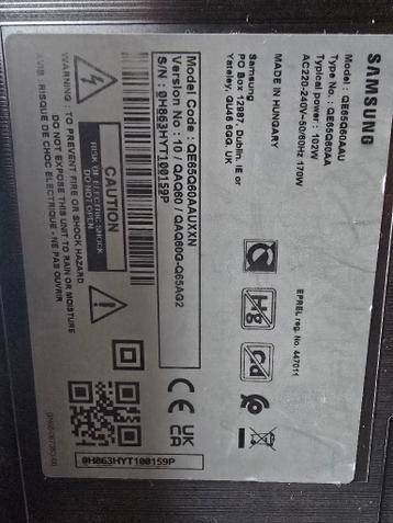 Samsung 65" qled 4k q60a (2021) scherm defect – voor onderdelen tv start op, geluid werkt. Inclusief voet.