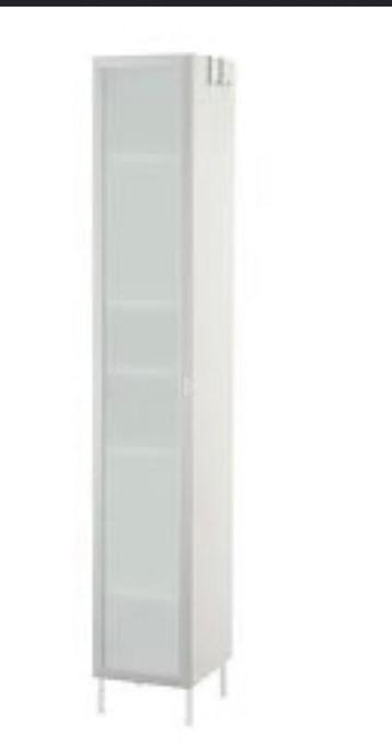Praktische hoge badkamerkast met een stijlvolle glazen deur. Ideaal voor het opbergen van handdoeken, toiletartikelen en andere benodigdheden. De kast is in goede staat en biedt veel opbergruimte, per
