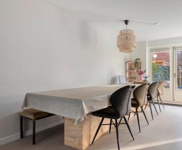 Deze onafgewerkte multiplex tafel is ongeveer 4 meter lang. Je moet hem zelf uit elkaar halen en afvoeren. De tafel is nog niet behandeld, dus je kunt er zelf mee aan de slag. Ophalen uiterlijk 20 maa