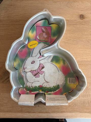 Deze bakvorm is van metaal en heeft de vorm van een paashaas. Je kunt er een grote cake of taart in bakken.