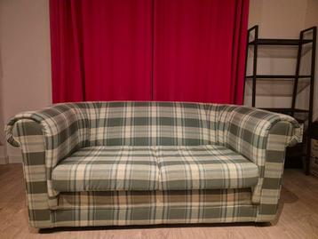 Gratis af te halen: comfortabele 2-zits bank met een klassiek geruit stoffen patroon. Ideaal voor een starterswoning of studentenkamer. De bank is gebruikt, maar kan zeker nog een ronde mee. Afmetinge