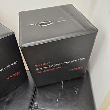 Deze gebruikte vierkante stevige poefjes gaan gratis weg. Stevige maar niet zwaar. Bovendekjes zijn wel beschadigd.