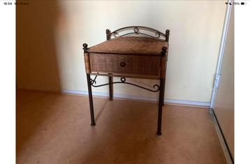 Twee sfeervolle nachtkastjes, gemaakt van rotan en metaal. Ze hebben een lade en kunnen ook als bijzettafeltje gebruikt worden. Ze zijn in goede staat. Gratis afhalen in ruil voor een zak verse noten