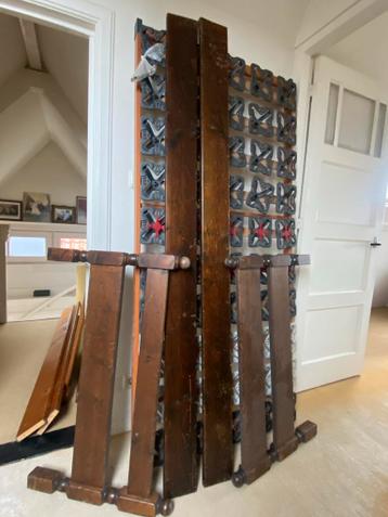 Twee eenpersoons ledikanten, één van grenenhout en één van eikenhout, gratis af te halen voor de liefhebber. Ideaal voor een logeerkamer of als project om op te knappen.