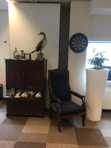Charmante buffetkast uit de periode 1925-1945, perfect voor een klassiek of landelijk interieur. Uitgevoerd in donker fineer (vermoedelijk mahonie of walnoot) met een fraaie boekmatch-tekening op de d