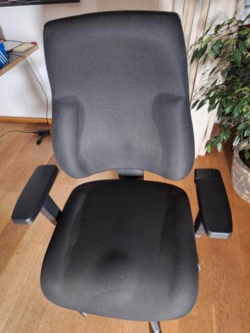 Comfortabele en goed verstelbare bureaustoel op wieltjes. De stof is nog helemaal intact. Let op: de linkerleuning is vast getaped. Voor zaterdag ophalen