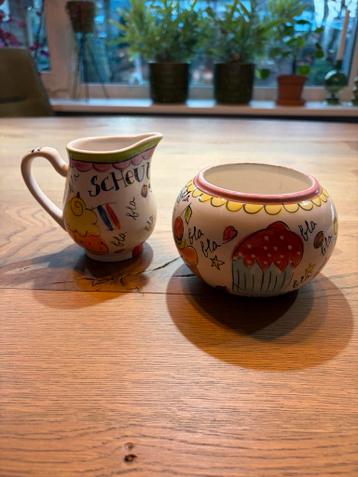 Leuke set van blond amsterdam bestaande uit een melkkan en een suikerpot. Helaas mist de suikerpot zijn deksel, maar verder is de set in goede staat.