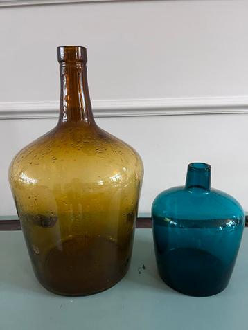 Twee mooie vazen, een grote amberkleurige en een kleinere blauwe, perfect als decoratie in huis. Gratis af te halen.