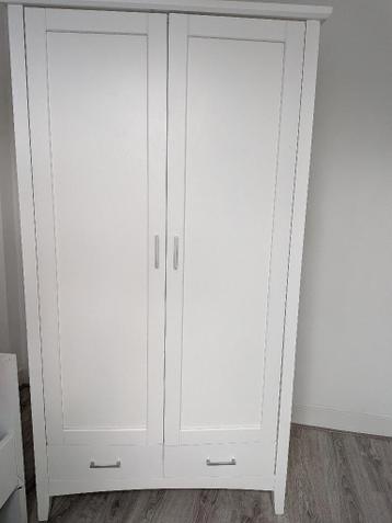 Ideaal voor een studentenkamer of als extra bergruimte! Deze witte kledingkast heeft ons jarenlang goed geholpen. Hij is zeker niet nieuw meer en heeft her en der wat gebruikerssporen, maar technisch