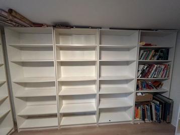 4 witte ikea billie boekenkasten gratis op te halen zo dit weekend of maandag of dinsdagavond. Rechter 2 zijn in goede staat, gekocht in 2021, linker 2 zijn minder goed, zo’n 10 jaar oud en verkleurd.