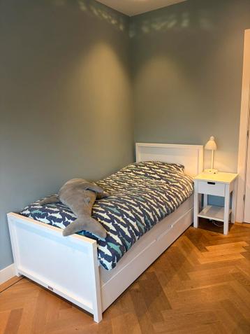 Bopita set kinderkamer - wit bureau met 2 gekleurde lades in rood en blauw: 140 (breed), 60 (diep), 72 (hoog) - wit nachtkastje met lade: 40 (breed), 40 (diep), 62 hoog. - Wit bed met onderschuif bed