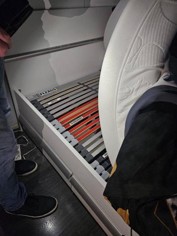 Dit is een tweepersoonsbed inclusief lattenbodems en matrassen. Het bed is in goede staat en biedt comfortabele ondersteuning. Ideaal voor een slaapkamer, logeerkamer of studentenkamer. De lattenbodem
