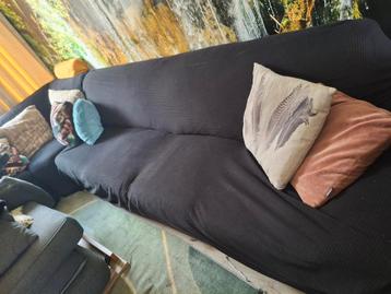 Hoekbank met 8 zitplaatsen bestaat uit 2 banken met 3 zitplaatsen 1 extra bank stuk 1 zitplaats en de hoek zit. Nep leer van de bank is gaan vervellen en zodoende hoezen erop gedaan. Ookal is t leer v