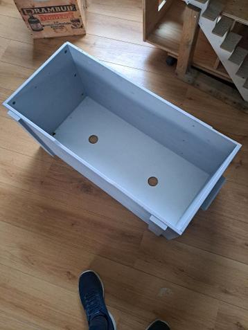 Makkelijke bergruimte gebruikt, kleine beschadiging bovenop. Zat ooit een deksel op, deze is er niet bij. Wegens verhuizing gratis op te halen