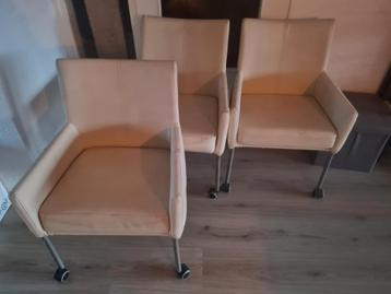 Gratis 3 crème stoelen op wieltjes, leerlook+ 1 extra