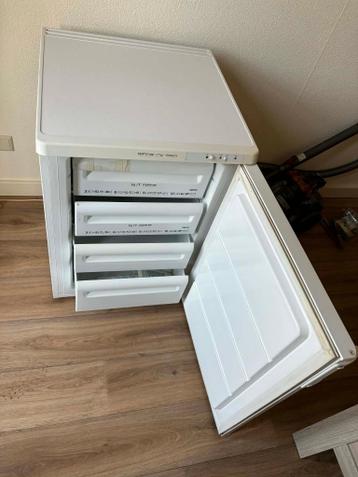 Tafelmodel diepvries met 4 lades, bovenste lade niet helemaal in orde meer, verders nog prima bruikbaar!