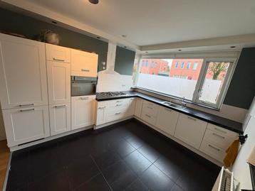 Hoekkeuken 330 × 370 cm – gratis (ja echt!) Hoekkeuken van zo’n 20 jaar oud, maar nog verrassend fris op het oog. Composieten blad in goede staat, frontjes met wat “levenservaring”. Inclusief: gasforn