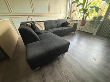 Bankstel, exclusief kussens. Bankstel bestaat uit 2 delen en heeft de hoek aan de rechterkant zoals op de foto’s zichtbaar is. De bank is 270 breed. 82 Cm hoog. Het lounge gedeelte is 190 cm diep.