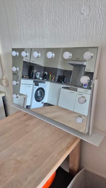 Mooie spiegel met verlichting in de vorm van bollen. Alles werkt naar behoren, al kan het soms voorkomen dat de bekabeling achterin niet goed zit, waardoor het licht even wegvalt. Een kleine wiebel aa