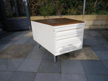 Zeer solide metalen ladenblok met drie lange laden. Afmetingen: grofweg 70 x 70 bij 60 hoog.