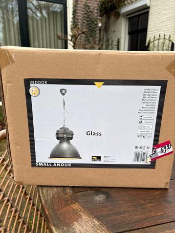 Gratis af te halen: een gloednieuwe industriële hanglamp, model 'small anouk', nog in de originele verpakking. Deze stijlvolle lamp combineert metaal en glas voor een robuuste, maar elegante u