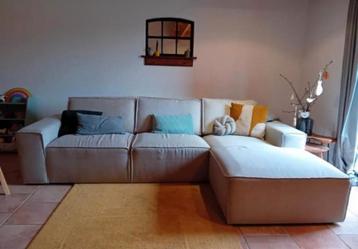 Hoekbank gebruikt, beige/ecru gemeleerd lengte: 270cm breedte: - zitgedeelte 95cm - hoekgedeelte 150cm hoogtes: - zitgedeelte 35cm - leuning zijkanten 50cm - rugleuning totaal 75cm ophalen in wintersw