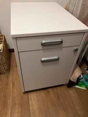 Gratis af te halen: een praktisch ladeblok met twee laden, perfect voor het opbergen van documenten, kantoorbenodigdheden of andere spullen. Het ladeblok is wit van kleur en voorzien van zilverkleurig