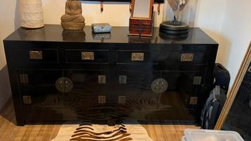 Gratis af te halen aziatisch dressoir. Staat op de eerste verdieping en kan alleen door het raam naar buiten. Afmetingen: hoog 90 cm diep 60 cm breed 180 cm