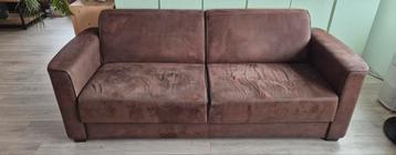 Comfortabele microlederen driezits bank met traagschuim in de zitting. De bank is nog in goede staat en zit heerlijk. Er waren enkele kleine gaatjes in de zitting, maar deze zijn netjes gerepareerd en