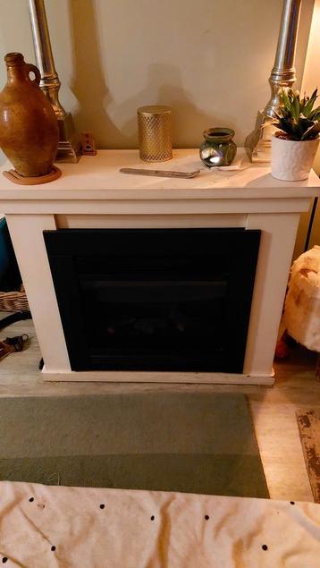 Gratis schouw plus elektrische haard, haard heeft 2 warmte standen.( Verwarmd je woonkamer super snel scheelt gas)..Let wel op schouw heeft wel verfje nodig! Haard heb ik passend gemaakt, klein latje