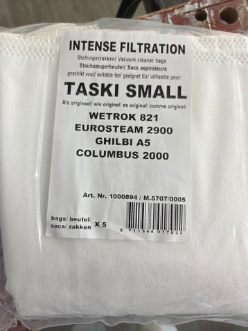 Stofzuigerzakken, 10 stuks, geschikt voor diverse modellen zoals taski small, wetrok 821, eurosteam 2900, ghilbi a5 en columbus 2000. Deze zakken bieden intense filtratie voor een schone en hygiënisch