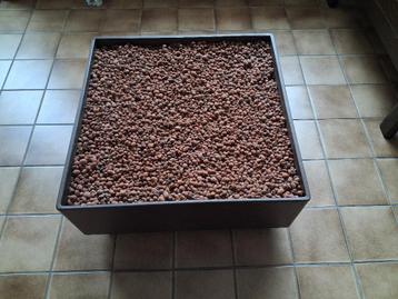 Afmeting bak: 70 x 70 x hoogte 24cm. Bak is zonder water en stenen zijn gewassen. Bak is verrijdbaar.