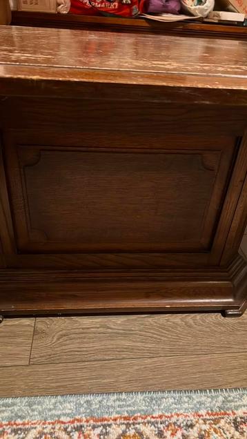 Prachtige massieve vintage tafel met een unieke uitstraling. De tafel is gemaakt van hoogwaardig hout en heeft een warme, karakteristieke kleur. Perfect als salontafel. De tafel heeft gebruikssporen d
