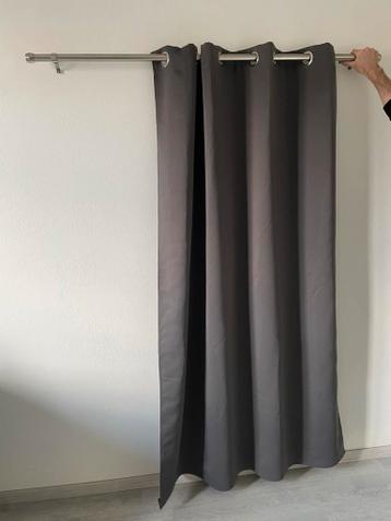Mooi antraciet verduisterend gordijn, compleet met bijpassende stang en ophangsysteem. Ideaal voor een moderne inrichting. Het gordijn is in goede staat en direct klaar voor gebruik. Afmetingen: rails