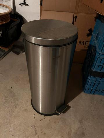 Stevige rvs prullenbak met handig pedaalmechanisme. Ideaal voor keuken of kantoor. De prullenbak is gebruikt en heeft lichte gebruikssporen, maar functioneert nog perfect. Een praktische en duurzame o