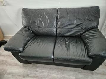 Deze comfortabele en stijlvolle zwarte leren tweezitsbank is ideaal voor kleinere woonkamers of als aanvulling op een bestaande zithoek. Het leer heeft lichte gebruikssporen, wat bijdraagt aan de char