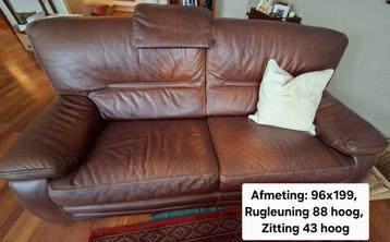 Mooie lederen bank en bijpassende fauteuil aangeboden. Beide meubelstukken zijn in goede staat en bieden veel zitcomfort. Ideaal voor een gezellige woonkamer. Afmetingen bank: 96x199 cm, rughoogte 88