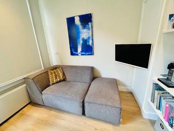 Stylish bankelement 1.5 Zits met hocker van merk zuiver bankelement met arm links: b: 145cm/ d: 100cm/ h: 71cm/ zithoogte 40cm/ zitdiepte: 60cm hocker: b: 60cm/ d: 92cm/ zithoogte: 40cm zet elementen