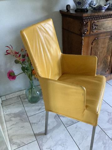 Leuke gele leren stoel. Ook als bureaustoel te gebruiken gratis op te halen