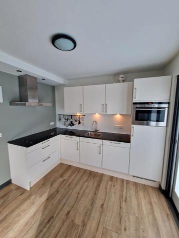 Hoekkeuken gebruikt met inbouwapparatuur. Afmeting 1,55 mtr (kookplaat) x 2,40 (3,0 mtr met kast) gratis ophalen met werkende apparatuur. Zelf demonteren en alles meenemen. (Koelkast en magnetron een