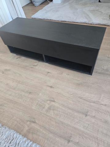 Stijlvol zwart tv-meubel of laag kastje, ideaal voor onder de televisie of als extra opbergruimte. Het meubel is in goede staat en past in diverse interieurstijlen. Het beschikt over open vakken voor