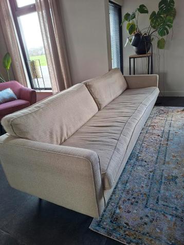 Beige bank, kan voor personen gebruikt worden, zit op 2 plekken iets door maar kan nog prima op gezeten worden. Diepte 75 cm breedte 275 cm
