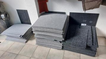 Tapijt tegels grijs 50x50 +/- 22 m2 tapijt tegels zwart 50x50 +/- 9m2 gratis afhalen.