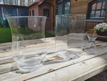 Diverse glazen vazen gratis af te halen in stiphout. Perfect voor bloemen of als decoratie. De set bestaat uit een grote vaas met opdruk, een vierkante vaas (met helemaal bovenaan een mini beschadigin