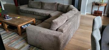 Zeer mooi hoekbankstel, kleur taupe, stof is van ripfluweel bankstel is in goede staat, de stof is nergens kapot of dun. Afmeting 380- 290