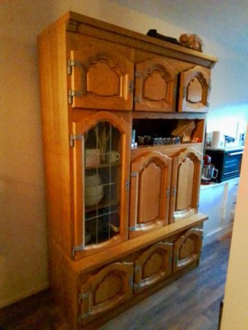 Mooie blankeiken buffetkast met veel opbergruimte, ideaal voor in de woonkamer of keuken. De kast is nog in goede staat, alleen de twee sleutels ontbreken. Afmetingen: lengte 141 cm, breedte 61 cm, ho